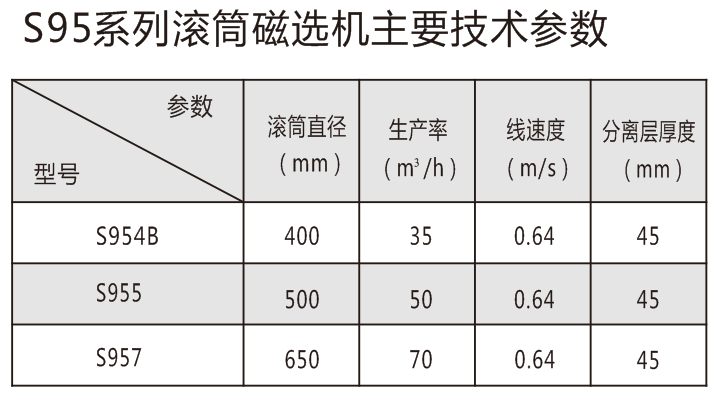 注:S95、S97、S99系列永磁分離設備,采用了高強磁性材料,具有磁性強、磁分離效果好、運轉平穩、 性能可靠等優點
